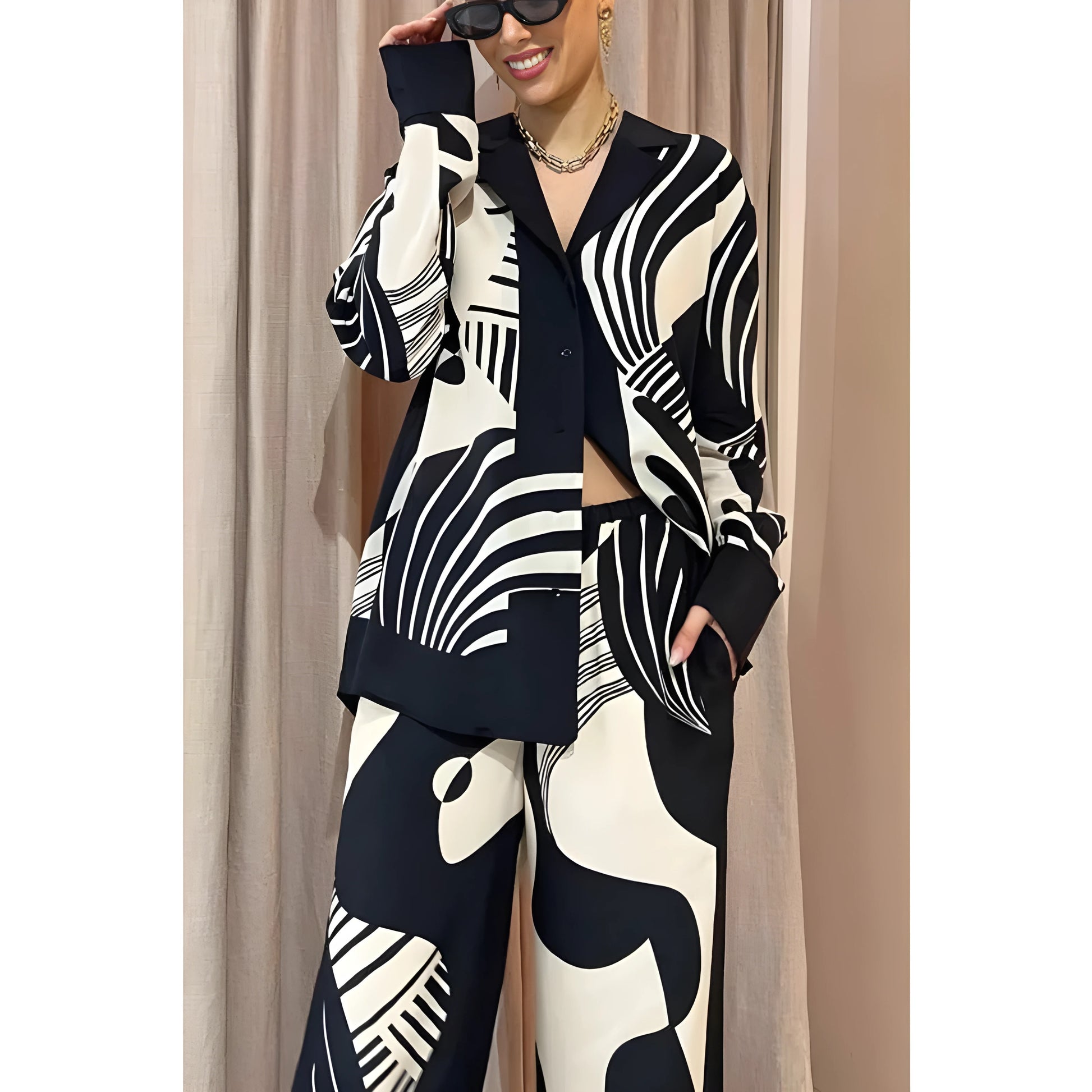 Dieses modische Damen Print Hose Zweiteiler-Set ist ein absolutes Must-have! Das lockere Langarm-Shirt und die passende Hose mit elastischem Bund sorgen für ein angenehmes Tragegefühl und eine feminine Silhouette. Das stilvolle Muster verleiht Ihrem Look eine besondere Note – ob für den Alltag, das Büro oder elegante Anlässe.