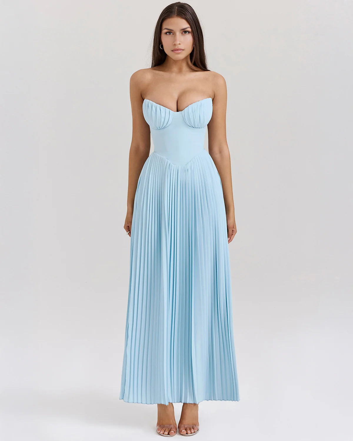 Solina | Faltenzauber – Elegantes trägerloses Plisseekleid für Damen, High Waist, Lang
