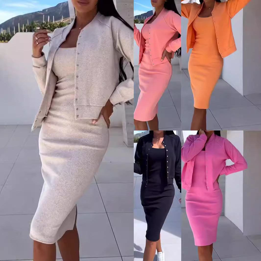 Mit Vivari | Rockmoment bringst du Frische in deine Garderobe! Dieses modische Zweiteiler-Set kombiniert ein trendiges Trägerkleid mit einer leichten Langarmbluse, perfekt für jede Jahreszeit. Die edle Knopfleiste und das bequeme Polyestergewebe sorgen für Tragekomfort mit Stil. Ob Büro, Stadtbummel oder Dinner – dieser Look überzeugt überall. Jetzt in 5 Farben & bis Größe 3XL erhältlich!